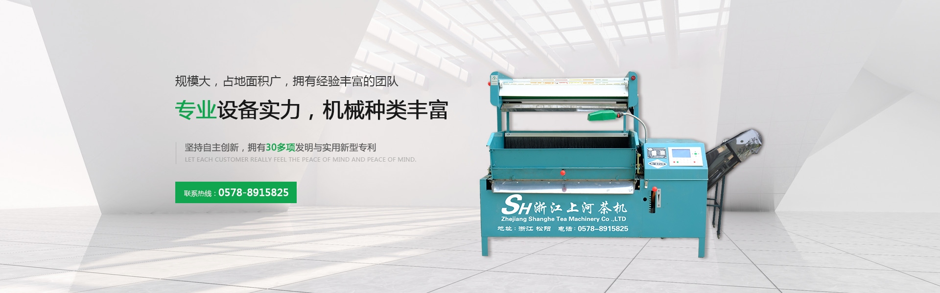 經(jīng)過多年的發(fā)展,浙江上河茶葉機(jī)械有限公司已成規(guī)模, 現(xiàn)占地面積13500多平方米,設(shè)備齊全。 主要產(chǎn)品有:6CCB系列全自動(dòng)智能扁茶機(jī)、6CL系列全自動(dòng)智能茶葉理?xiàng)l機(jī)、6CH系列茶葉輝干機(jī)等10多種機(jī)型。